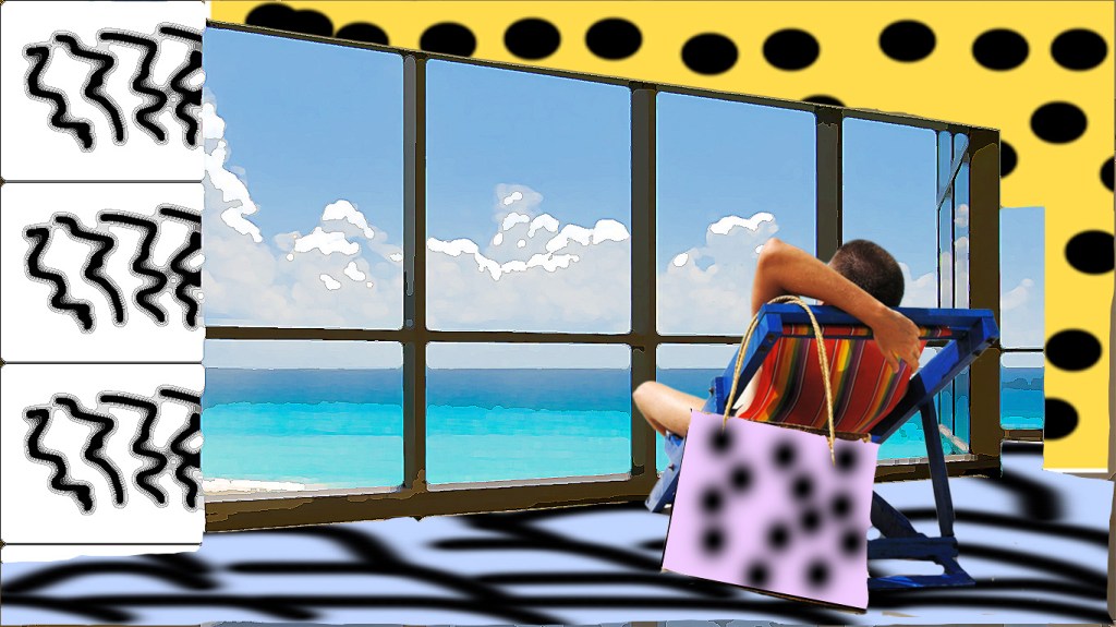 The Focus I used for number one is the man watching the oceanfront view. Since I wanted the focus to be on the man, I used subtle textures and used more “pop” and brighter textures of the view. I decided to change the texture of the windows so that the windows had a shine to them. I also didn’t add a lot of bright colors to the negative space since I wanted the main focus to be the man.